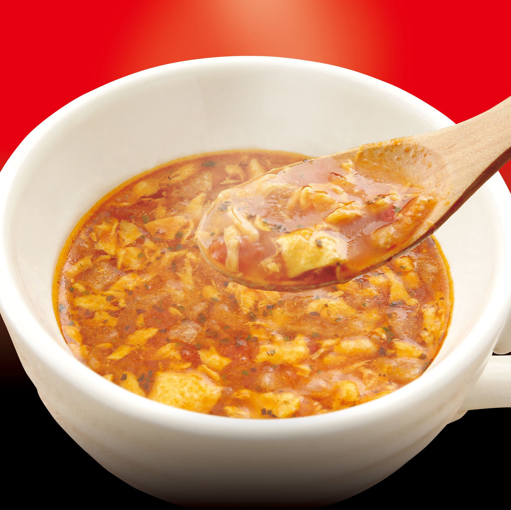 完熟トマトと野菜のうま味にチーズ、溶き卵を加え濃厚な味わいに仕上げました。作り立ての美味しさが 簡単・手軽にお楽しみいただけます。