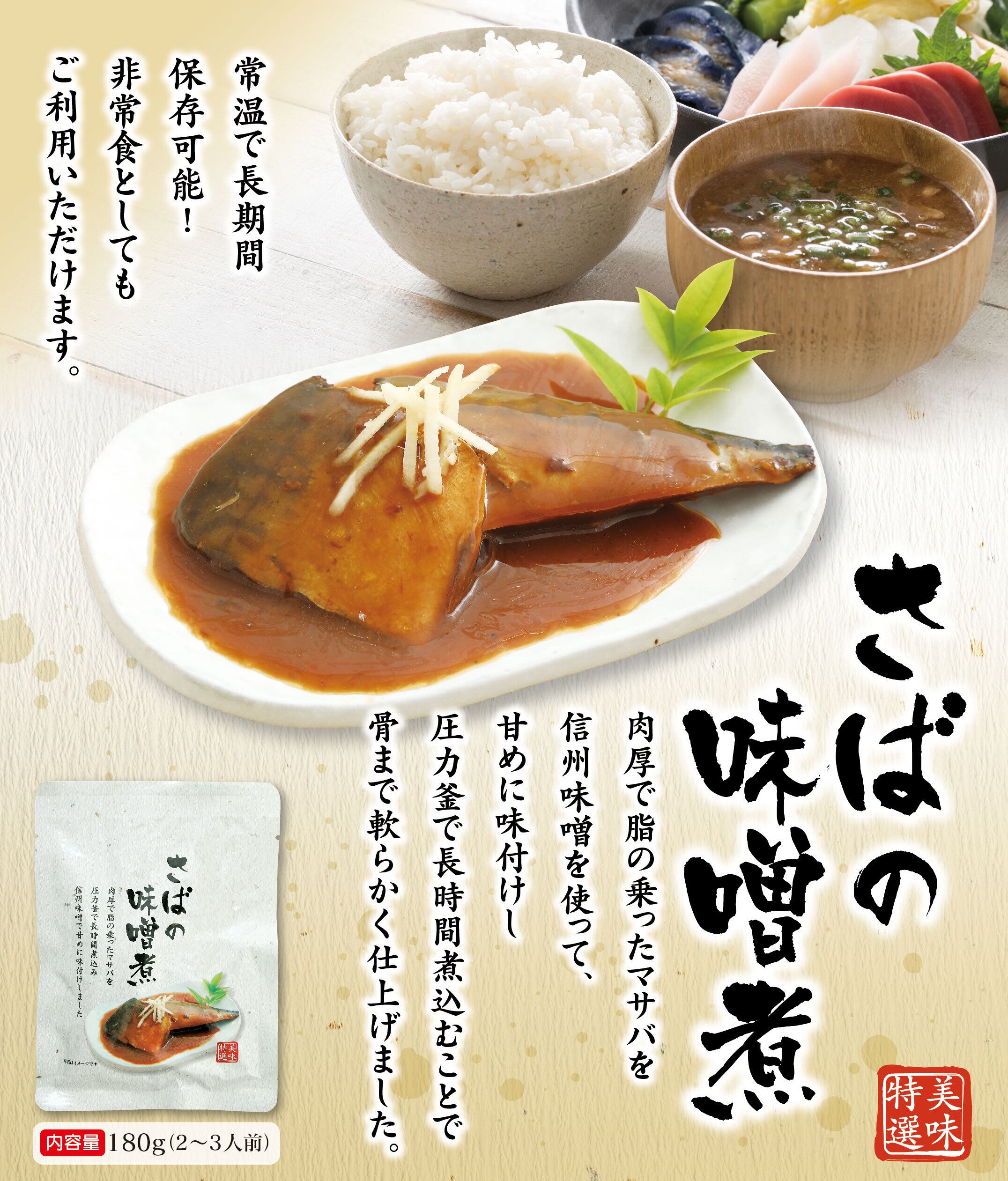 肉厚で脂の乗ったマサバを信州味噌を使って、甘めに味付けし圧力釜で長時間煮込むことで骨まで軟らかく仕上げました。