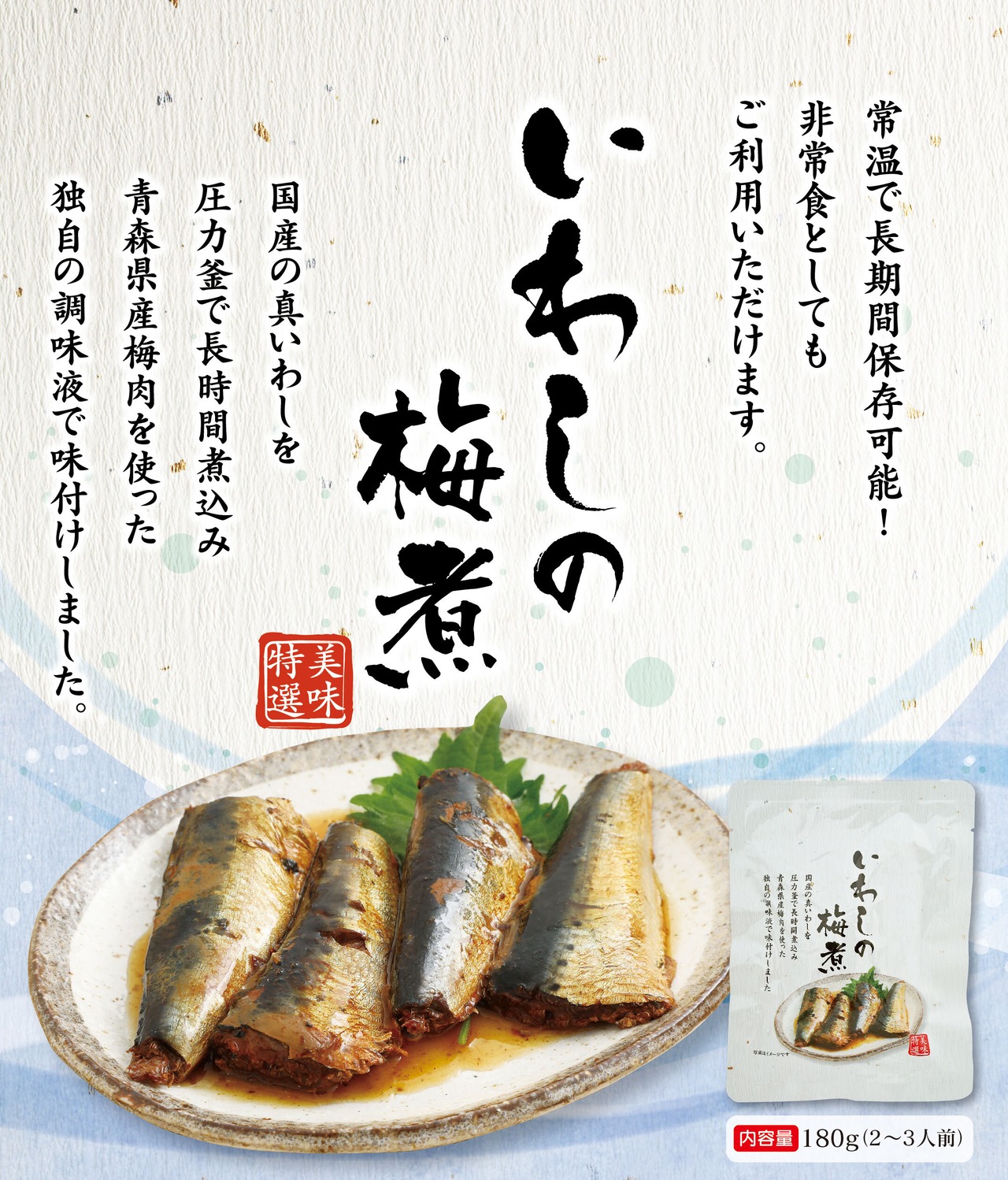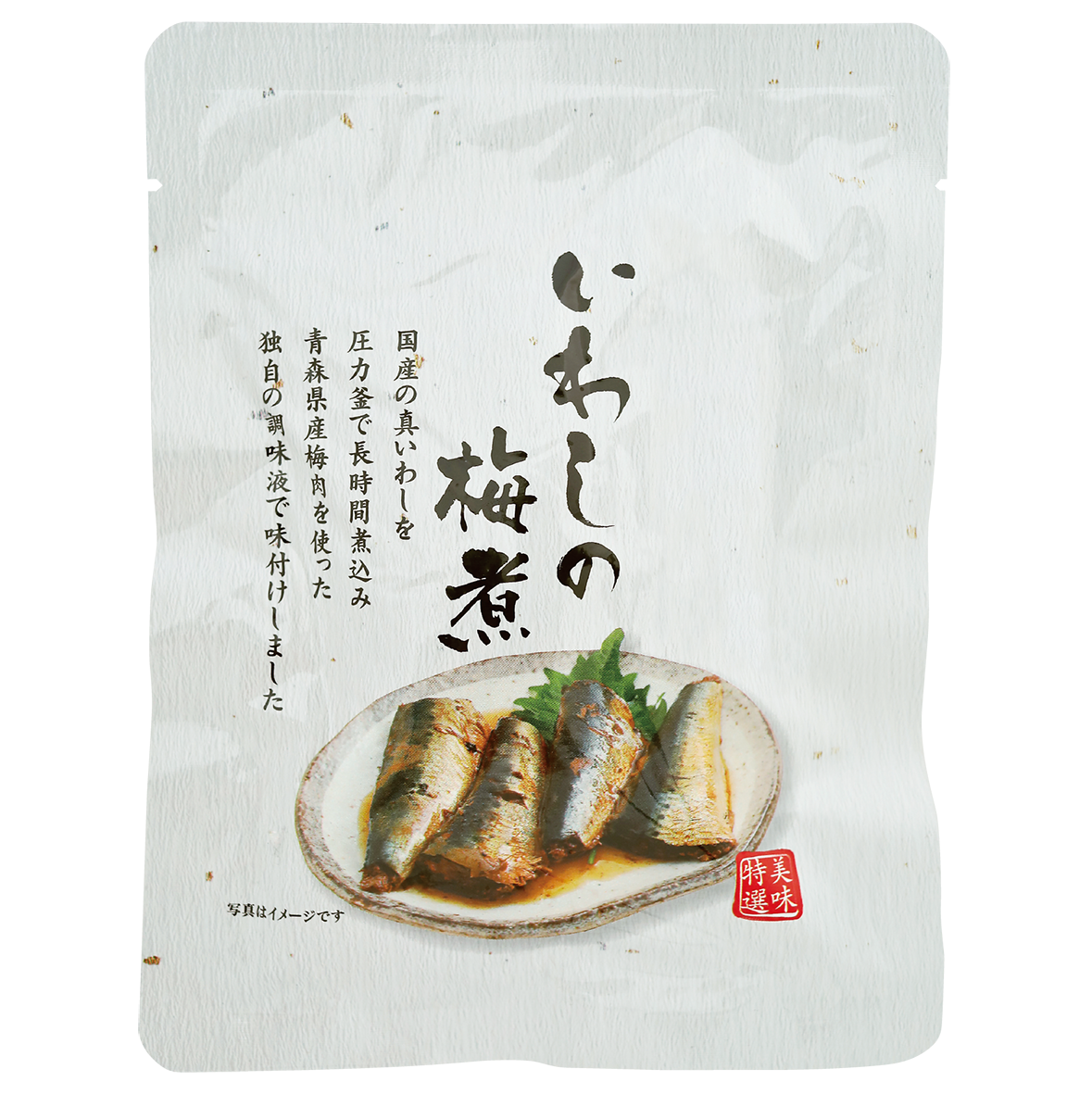 国産の真いわしを圧力釜で長時間煮込み、青森県産梅肉を使った独自の調味液で味付けしました。