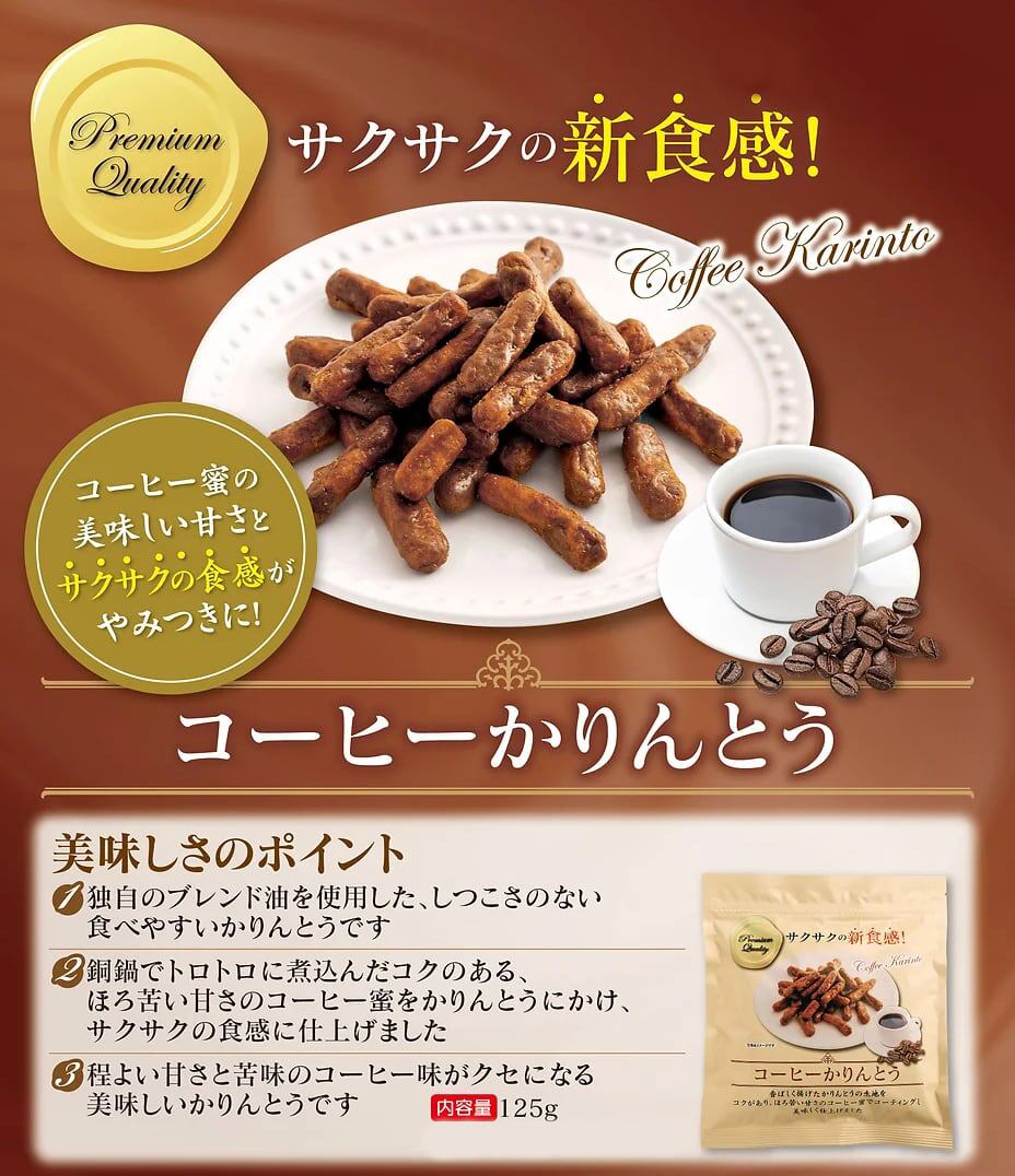 しつこさのないサクサクとした「新食感のかりんとう」に仕上げました 銅鍋でトロトロに煮込んだ コクのある、ほろ苦い甘さのコーヒー蜜とサクサクの食感がクセになる逸品です。